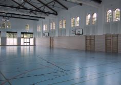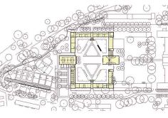 Die Anforderung, das Denkmal in seiner städtebaulich wirksamen Erscheinung zu erhalten, und zugleich das Raumangebot zu erweitern führte zu der Idee, wesentliche Schulteile im Innenhof unterirdisch anzuordnen.