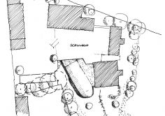Die Platzierung entlang eines natürlichen Geländeversprunges unter altem Baumbestand ermöglicht die barrierefreie Zugänglichkeit des zweigeschossigen Neubaus auf beiden Ebenen.