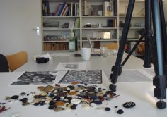 Die Fassadenverkleidung aus dauerhaften Holzwerkstoff-Platten wird mit einem im Team mit dem Hersteller entwickelten Endlos-Knopf-Motiv bedruckt, das Name und Motto der Kindertagesstätte spielerisch zwischen Konkretion und Abstraktion changieren lässt. Die Variante fand zwar uneingeschränkte Zustimmung bei allen Beteiligten, konnte jedoch aus Kostengründen nicht realisiert werden.
