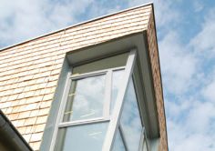 Dabei wird nicht nur die Gebäudeachse um 90°, sondern auch noch die Dachform um 180° über Kopf gedreht und damit auf ihre formale Spannkraft geprüft.