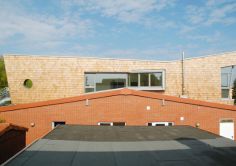 Diese Gestaltlösung benötigte zu ihrer Verwirklichung nicht nur eine mutige Bauherrin, tolerante Nachbarn und Behörden, sondern aus vielerlei Gründen auch die besonderen Stärken des Holzbaus, wie z.B. seine Leichtigkeit, seine Spannkraft für Länge und Auskragungen, die kleinteilige Einpassbarkeit in das Bestandsdach, die Möglichkeit zur Vorfertigung und Schnelligkeit des Aufbaus über dem laufenden Betrieb.