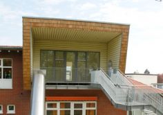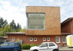 Die heterogene bis disparate Wohn- und Mischbebauung der Umgebung erschien uns als eine stumme Aufforderung, für diese Aufstockung die angepassten traditionellen Baukörperformen zu verlassen und einmal den Ritt zu wagen – der Spannung erzeugt und hoffentlich das Kinderherz erfreut.