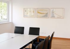Ein von oben wiederum durch eine Glasfassade aus Profilbauglas belichtetes großzügig gestaltetes Treppenhaus lädt ein ins „piano nobile“, nach dem Vorbild städtischer Bürgerhäuser, dem „vornehmen“ Obergeschoss mit Foyer und Gottesdienstraum, Raum der Stille (Erker ebenfalls aus Profilbauglas) und Bürobereich, sowie den Kinderräumen im DG. Als geistliches Modell für diese Raumanordnung kann die Tempelanlage der alttestamentlichen Tradition dienen, die mit ihrer Abfolge von Vorhöfen einen schrittweisen Zugang zum Heiligtum gerade in Anbetracht einer multikulturellen und multireligiösen Umwelt formulierte. Damit wird, übertragen auf ein zeitgemäßes Gemeindemodell, auf der einen Seite im Erdgeschoss ein niedrigschwelliger attraktiver Zugang für alle angeboten, auf der anderen Seite aber der Ort der Gottesbegegnung aus dem Alltag herausgehoben. Der Zugang zum Gottesdienstraum bedarf der bewussten Entscheidung und Hinwendung und wird so in besonderer Weise als Kraftquelle und festlicher Gemeinschaftsraum wirksam.