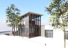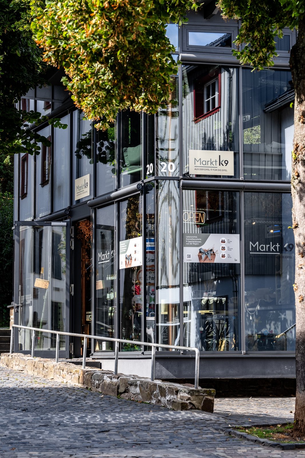 Um die Besucher der Altstadt auch in die Seitenstraße ein paar Meter westlich von der zentralen Flanier- und Einkaufsmeile zu leiten, wurde am Innenstadtrand zwischen Hangkante mit Treppenanlage zur Stadtmauer und der Rückseite des historischen HEINO-Cafés ein kleiner Glaspavillon als Café, Snackbar und Spezialitäten-Kiosk in das Altstadtgefüge eingewebt.