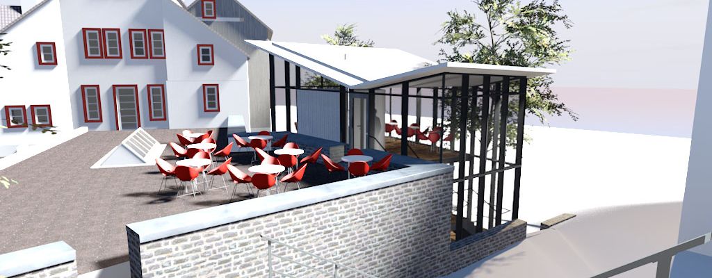 Schwungvolles Glashaus-Cafe in der Altstadt