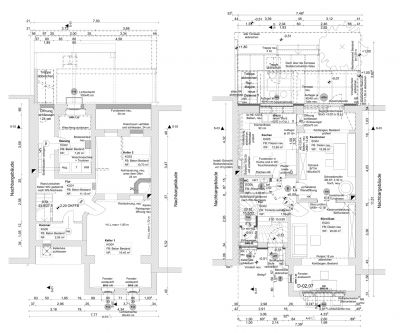Das Haus wurde bis auf den Rohbau entkleidet, konstruktiv ertüchtigt, erhielt neue räumliche Verknüpfungen, Installationen, Küche und Bäder, ein mit Zellulose gedämmtes Dach, vergrößerte Holzfenster, einen skandinavischen Grundofen im Esszimmer u.v.m.. Der alte wohngesunde (schimmelverhindernde, feuchteregulative, luftschadstoffbeseitigende) Kalkputz innen wurde freigelegt u. mit passenden kalkbasierten Putzen und Farben behutsam ergänzt. Nun ist alles licht, hell und weit.