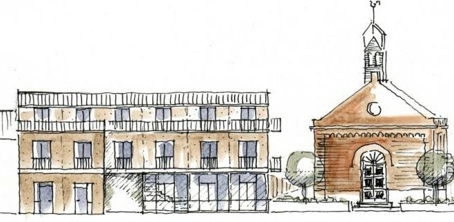 Das Kirchengrundstück wird mit der Ergänzung der vorhandenen Sakristei arrondiert und die Kirche insgesamt im Ensemble von den umgebenden Gebäuden freigestellt, ihre Bedeutung damit deutlich aufgewertet.