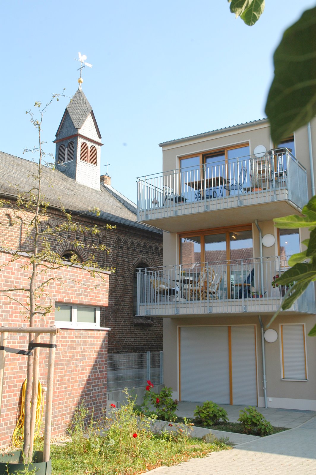 Auf dem Gelände eines ehemaligen Gutshofes neben der Evangelischen Kirche in Kerpen entsteht dieses Mehrfamilien-Wohnhaus mit Büro. In fußläufiger Nähe zum Ortszentrum mit Marktplatz der alten Stadt Kerpen hält sich das Stadthaus zum Wohnen und Arbeiten an den Maßstab der direkten umgebenden Nachbarbebauung der ruhigen Nebenstraße im Stadtzentrum. Hier ist die Welt noch in Ordnung, wenn die Glocke zum Gottesdienst ruft und die Gemeinde standhaft ihren Gott feiert!