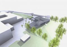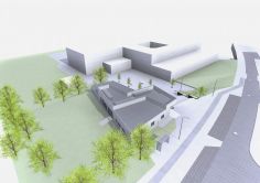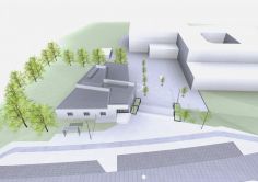 An dieser Stelle vermittelt das Gebäude zugleich den 3m-großen Höhenunterschied zwischen Straße und Schulgelände und bietet eine neue prominente und identitätsstiftende Adresse (Hingucker) mit eigenen Eingang von der Kapfenberger Straße.