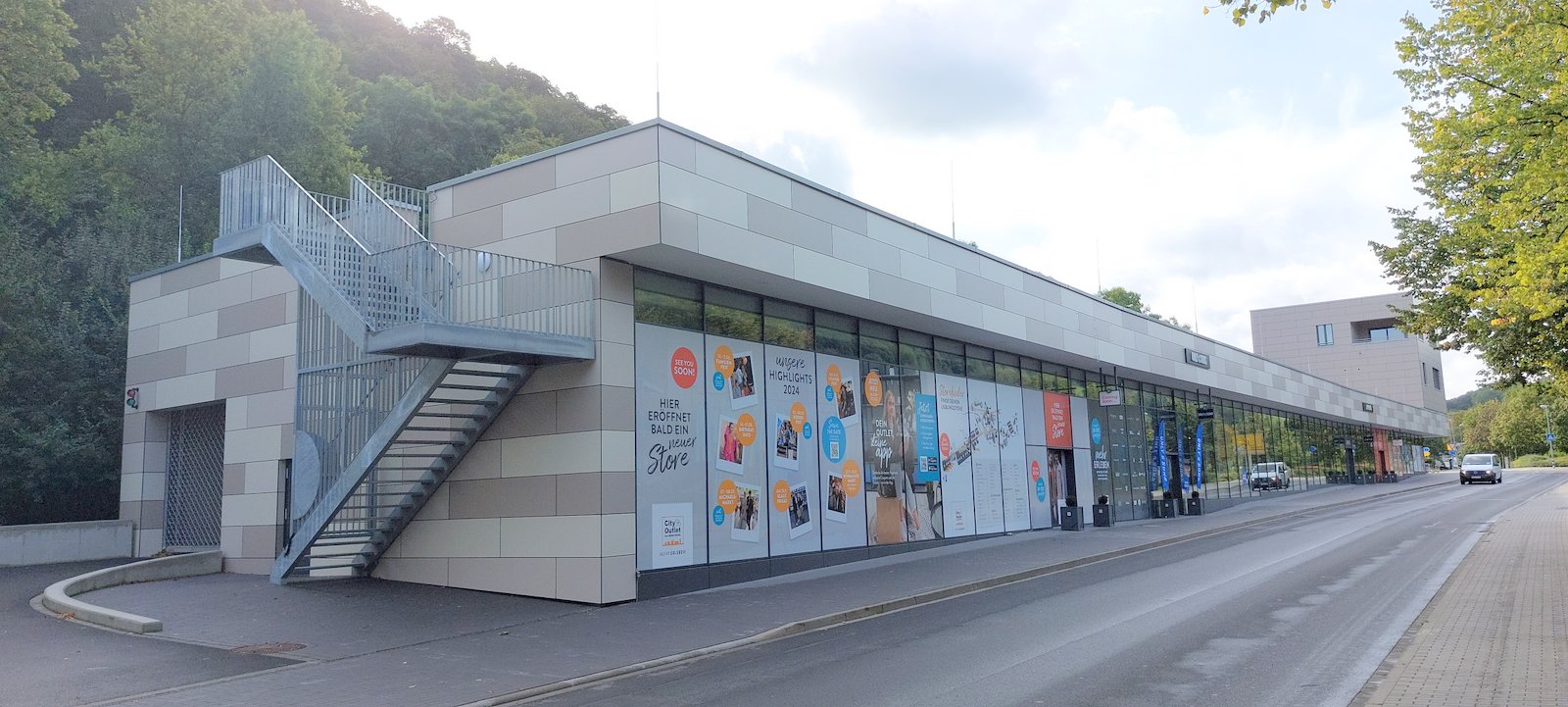 Der Weg zur historischen Altstadt von Bad Münstereifel führt für viele Besucher, die die Stadt von Süden erreichen, über die großen Parkflächen am Ortseingang an der Trierer Straße. An dieser fußläufigen Verbindung zur Altstadt ist für die Stadt mit dem Neubau des "ZIMMEREI-OUTLET-STORE“ ein neuer Auftakt entstanden.