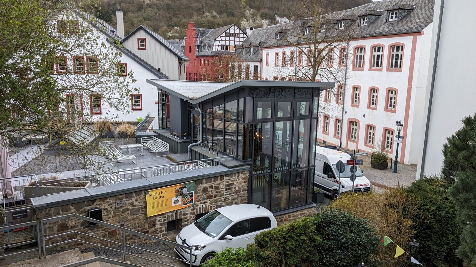 Schwungvolles Glashaus-Cafe in der Altstadt