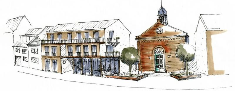 Das Kirchengrundstück wird mit der Ergänzung der vorhandenen Sakristei arrondiert und die Kirche insgesamt im Ensemble von den umgebenden Gebäuden freigestellt, ihre Bedeutung damit deutlich aufgewertet.