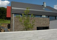 Ihren Traum vom modernen Wohnen im Natursteinhaus erfüllten sich die Bauherren auf einem großzügigen Hanggrundstück oberhalb von Königswinter mit Blick über Rheintal u. Siebengebirge.